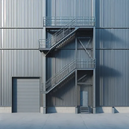 Metalowe schody zewnętrzne i drzwi loftowe — stylowe balustrady do domu